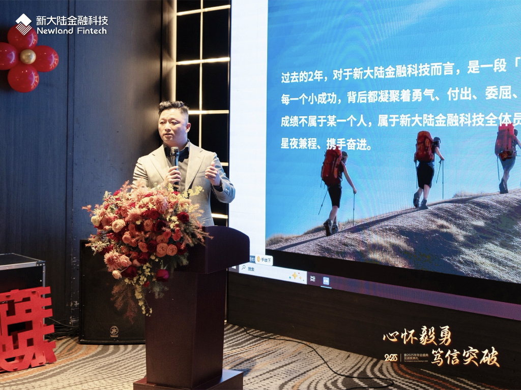 新大陸金融科技總經理樓琦以 “勇氣” 和 “突破” 為關鍵詞作年度工作匯報及新年展望。面對艱難的市場環境,公司經歷了2023年的變革和2024年的轉型,持續打造小微IPC核心能力,通過資源重組實現降本增效,探索可持續發展之路。樓琦強調,當前所取得的成績,離不開全體員工的勇氣、付出以及對創新的執著堅守。在充滿機遇與挑戰的 2025 年,公司的持續發展依然需要全體員工堅守初心,憑借非凡的勇氣實現突圍。