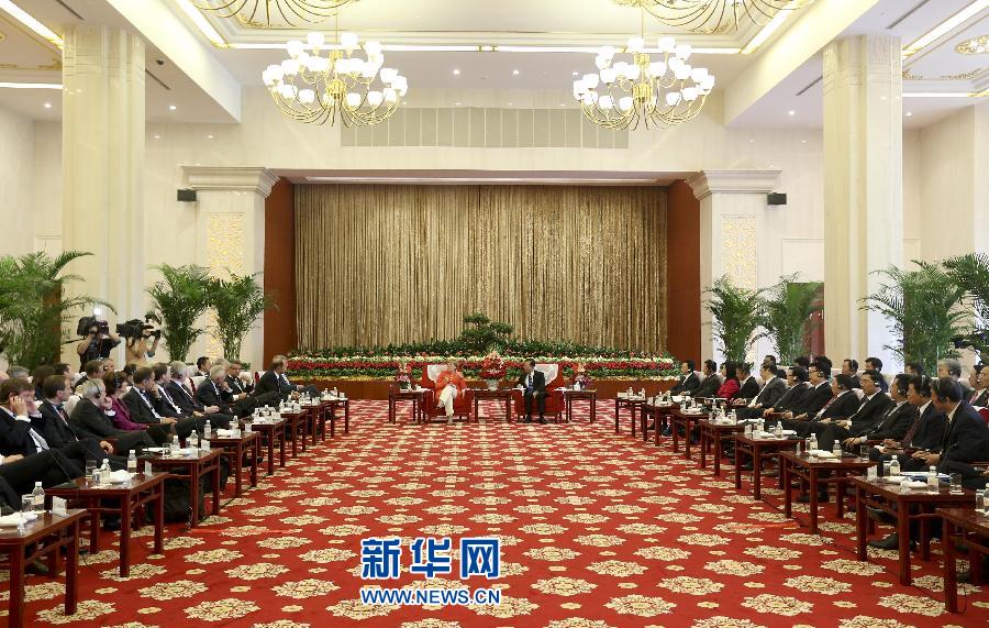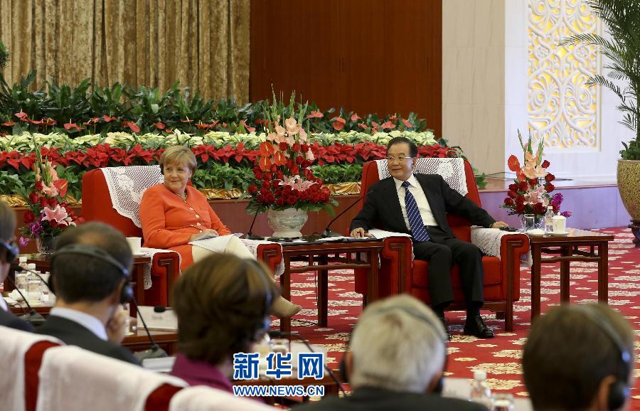 2012年8月31日,中國(guó)國(guó)務(wù)院總理溫家寶在天津同德國(guó)總理默克爾一起與兩國(guó)企業(yè)家座談。