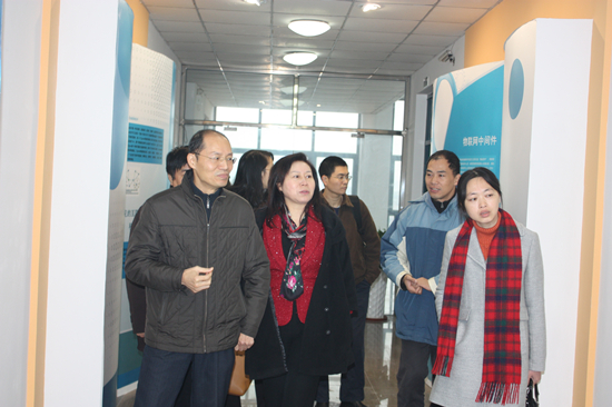 在物聯(lián)網(wǎng)學(xué)院院長(zhǎng)蘇凱雄等院領(lǐng)導(dǎo)的陪同下, 王晶總裁參觀了物聯(lián)網(wǎng)工程實(shí)驗(yàn)室