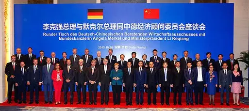 圖:李克強總理與默克爾總理同中德經濟顧問委員會成員合影